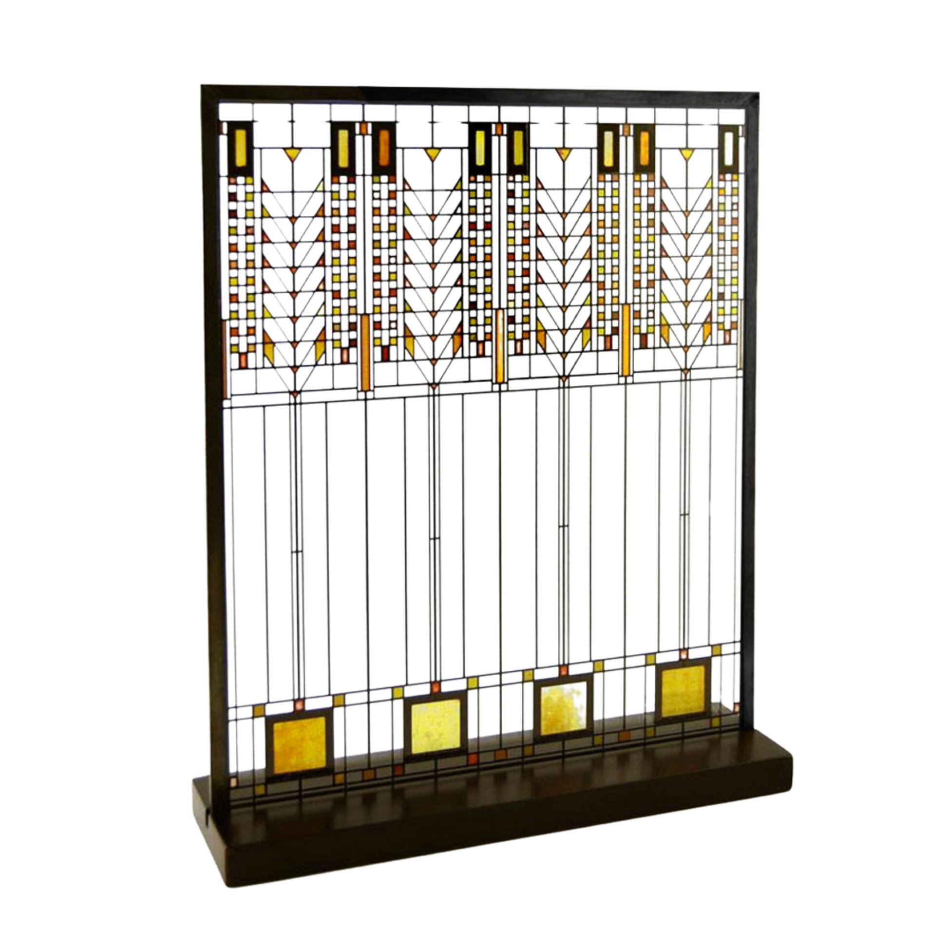 This art glass replica of Frank Lloyd Wright's Tree of Life window beautifully reflects the original design from the Darwin D. Martin House. Featuring geometric shapes and natural motifs, it serves as a stylish addition to your home or office and makes a thoughtful gift for those who appreciate architectural design.