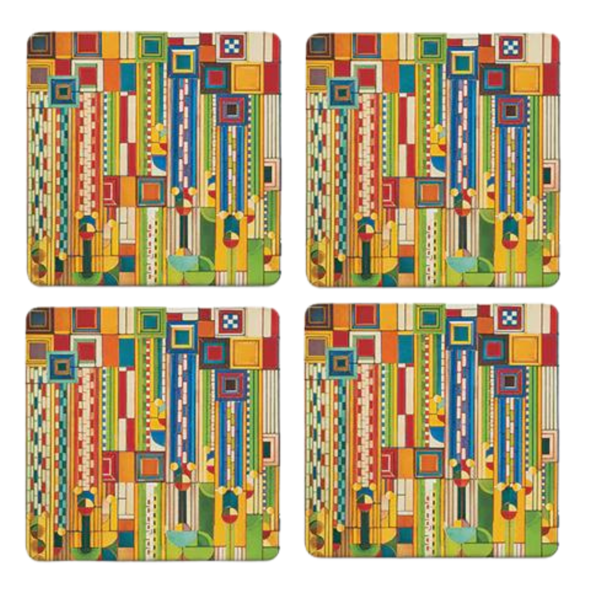 Perfect for entertaining or everyday use, this coaster set makes a unique gift for any Frank Lloyd Wright enthusiast or lover of modern, nature-inspired design!