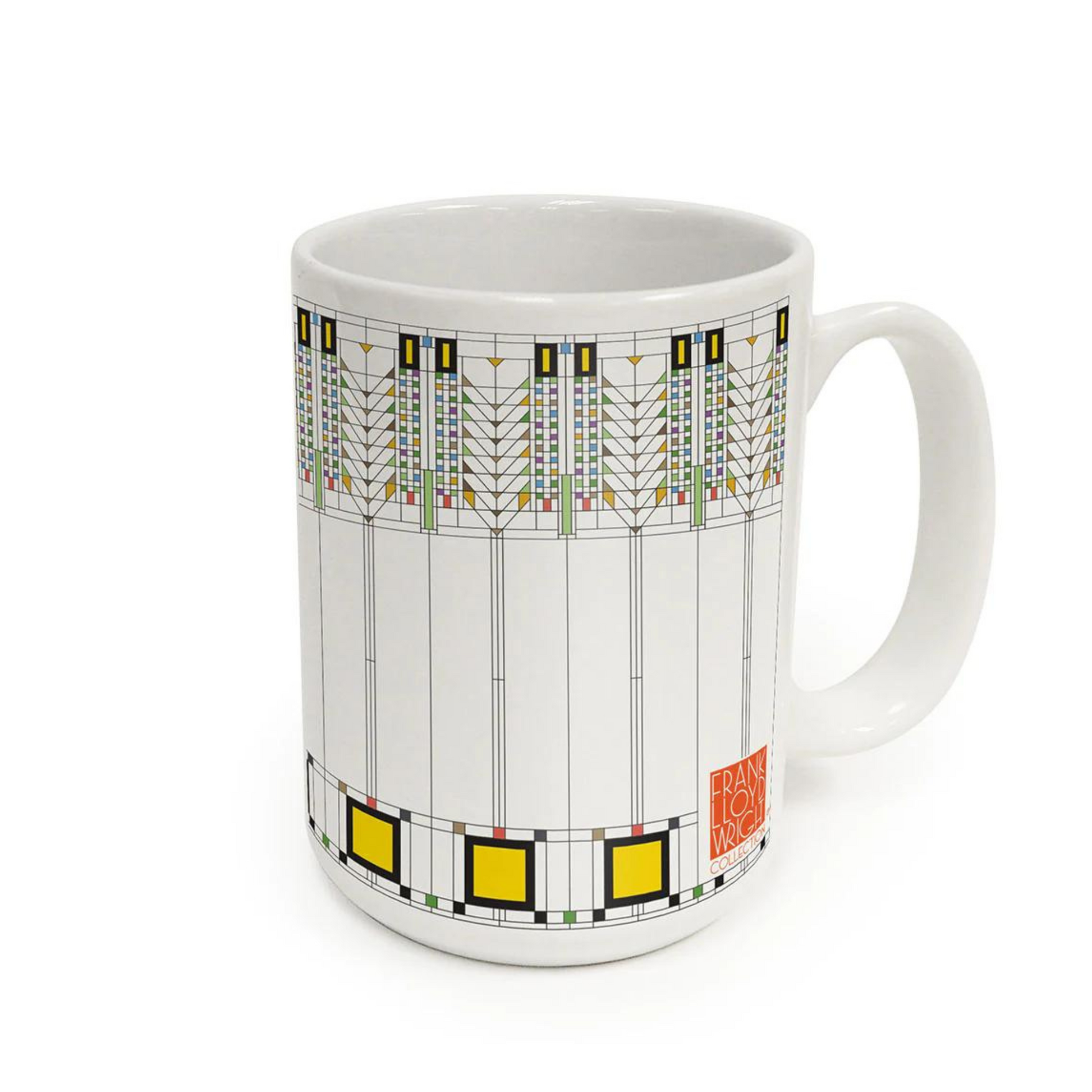Enjoy your morning coffee in style with the Tree of Life Ceramic Mug. This vibrantly printed 15-ounce mug showcases a stunning design inspired by Frank Lloyd Wright’s iconic Tree of Life art glass window, adding a touch of elegance to your daily routine.