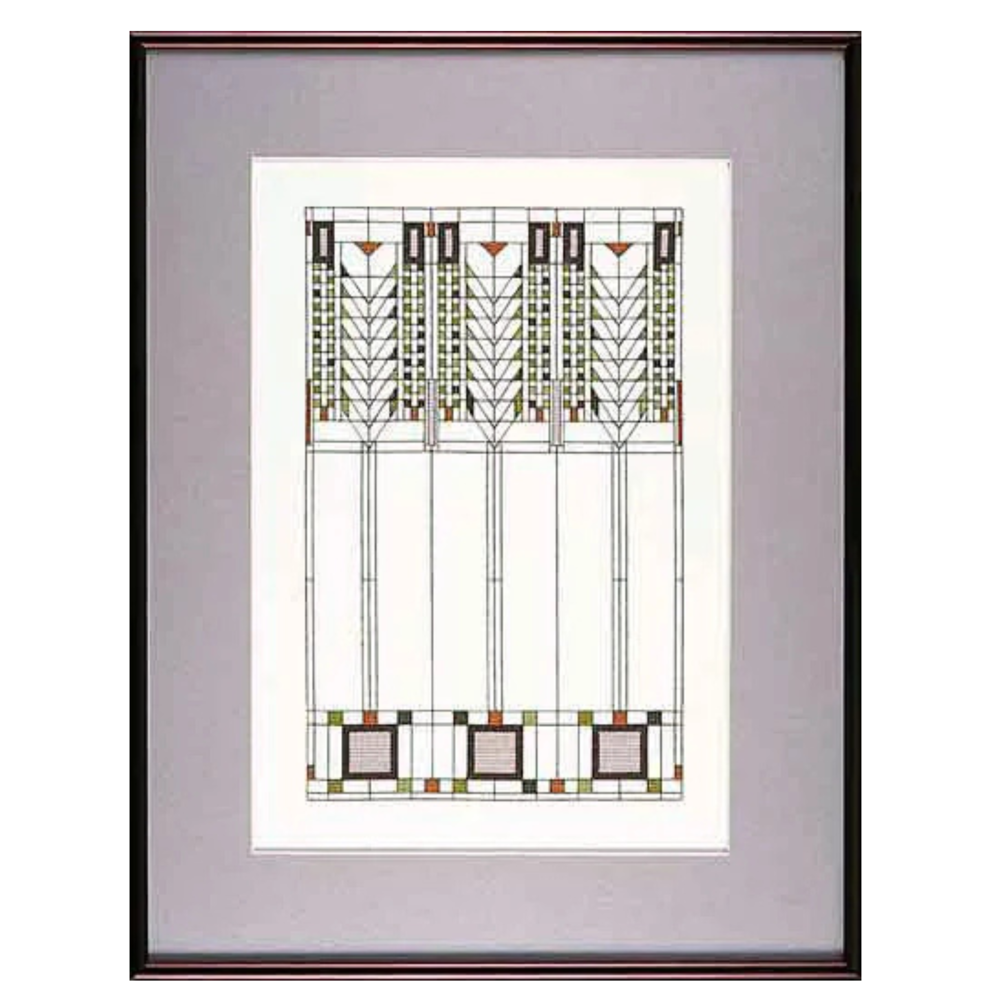 This is an adaptation of an art glass window Wright designed for the Darwin D. Martin House in 1903-1905. Art glass designs in Wright's buildings served to reinforce his aesthetic and architectural objectives. Here he employs abstract leaves and branches to form the “Tree of Life” motif.