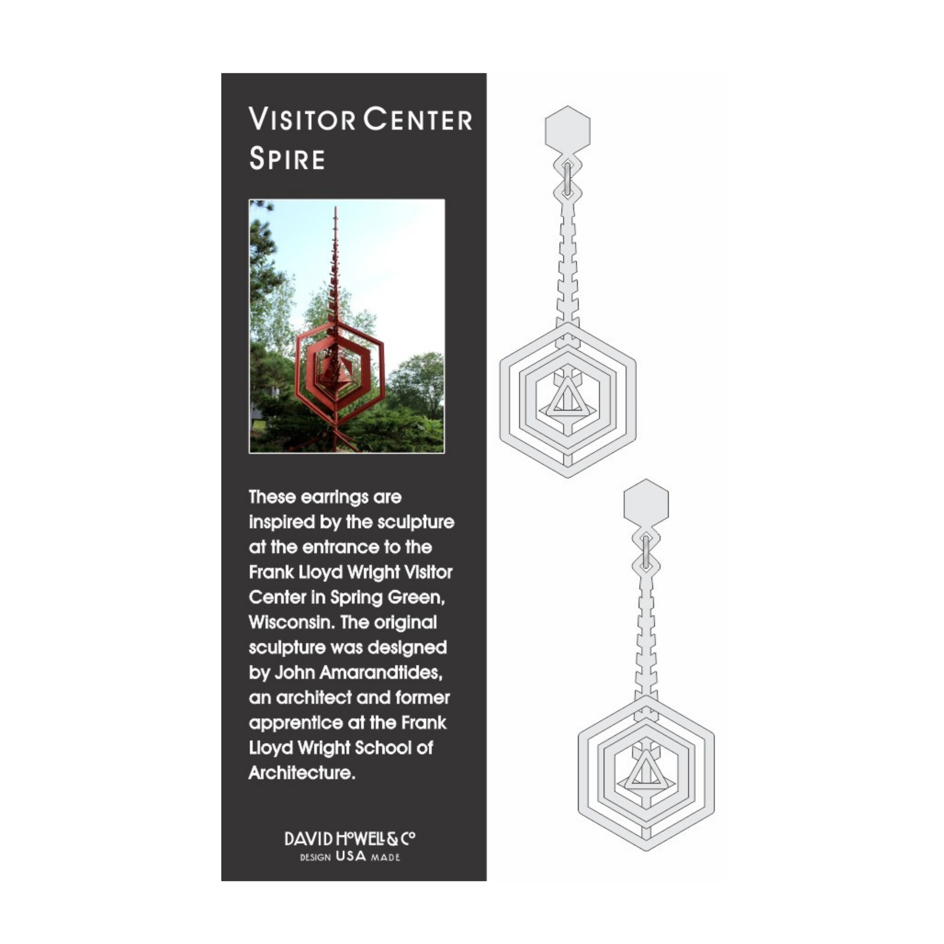 Inspired by the stunning sculpture by John Amarantides, a former apprentice of the Frank Lloyd Wright School of Architecture, these silver Spire Earrings pay elegant tribute to the original design located outside the Frank Lloyd Wright Visitor Center in Spring Green, Wisconsin.