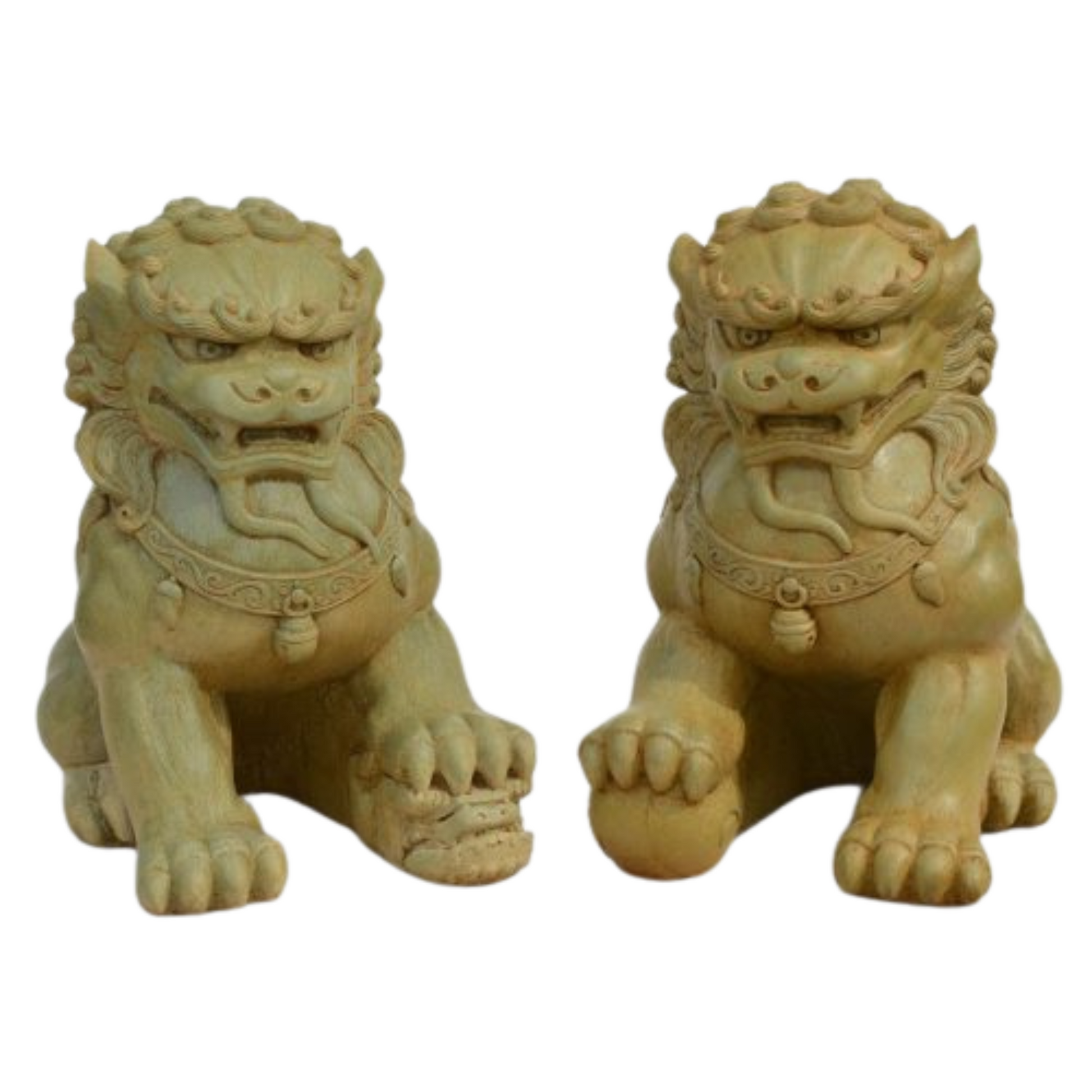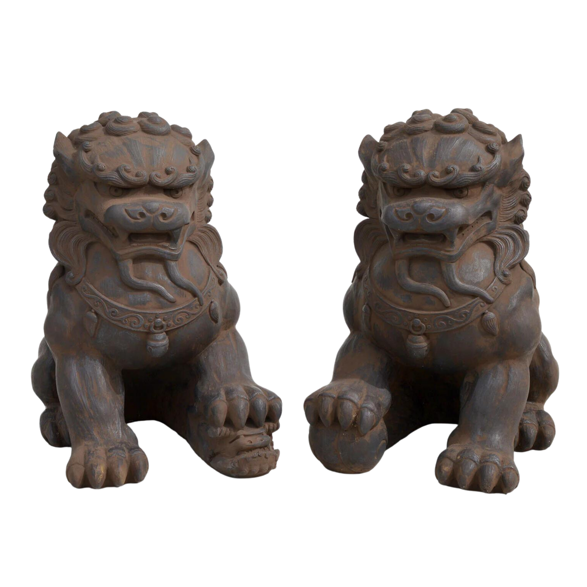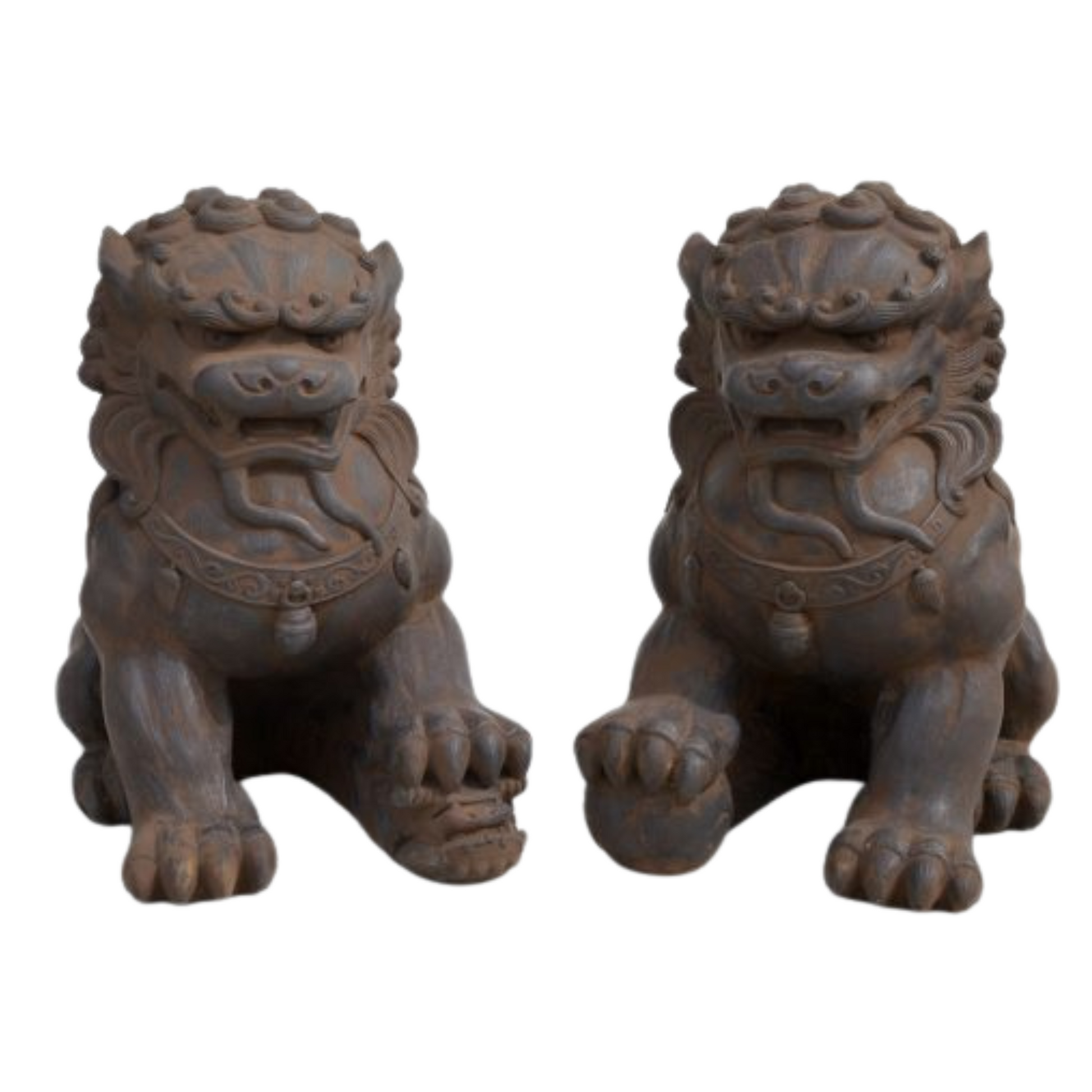 Elevate and enhance your surroundings with these captivating Fu Dog sculptures and bring the allure of Frank Lloyd Wright's artistic inspiration into your life. Crafted with utmost care, this stunning duo resembles the sculptures that flank the lower courtyard at Taliesin in Spring Green, Wisconsin.