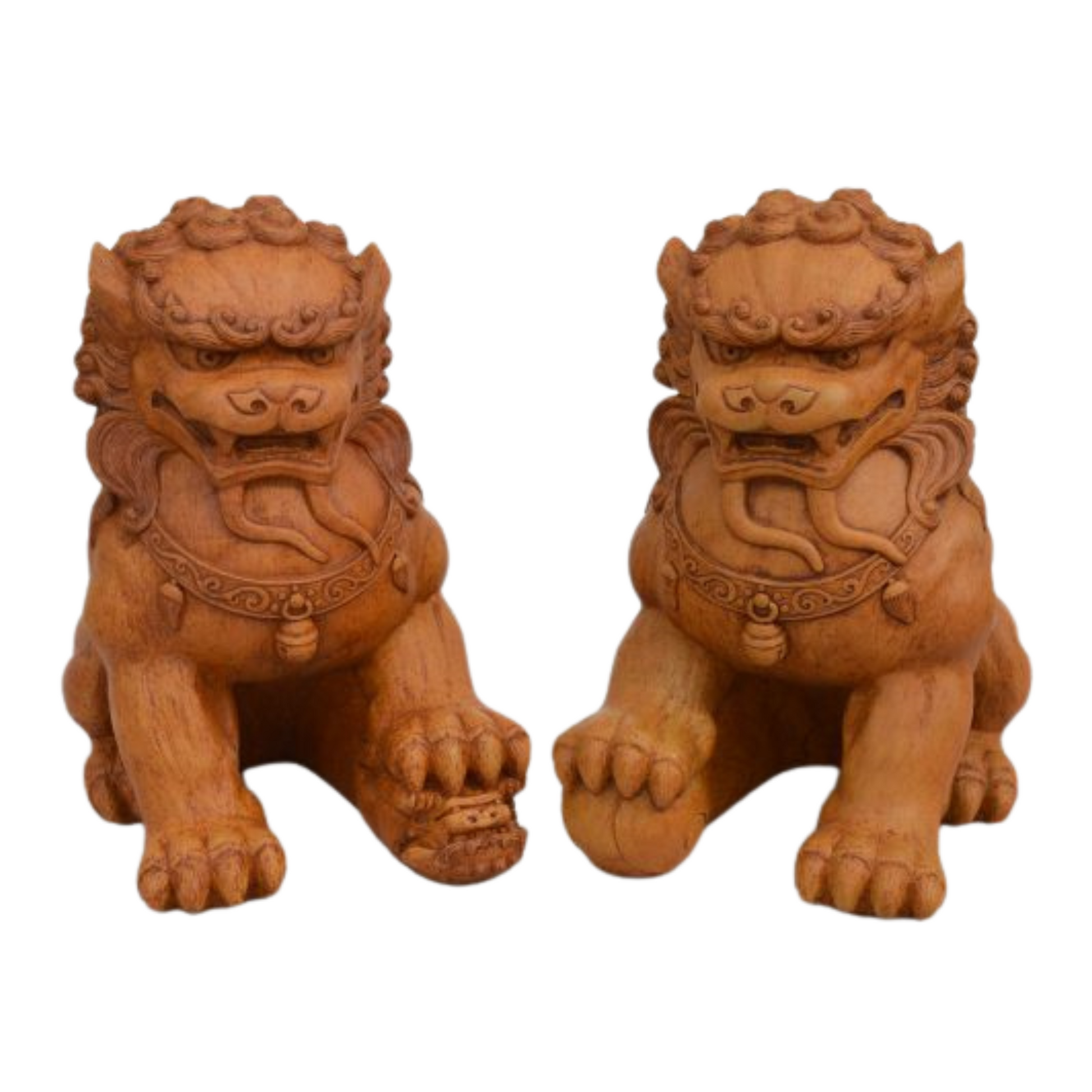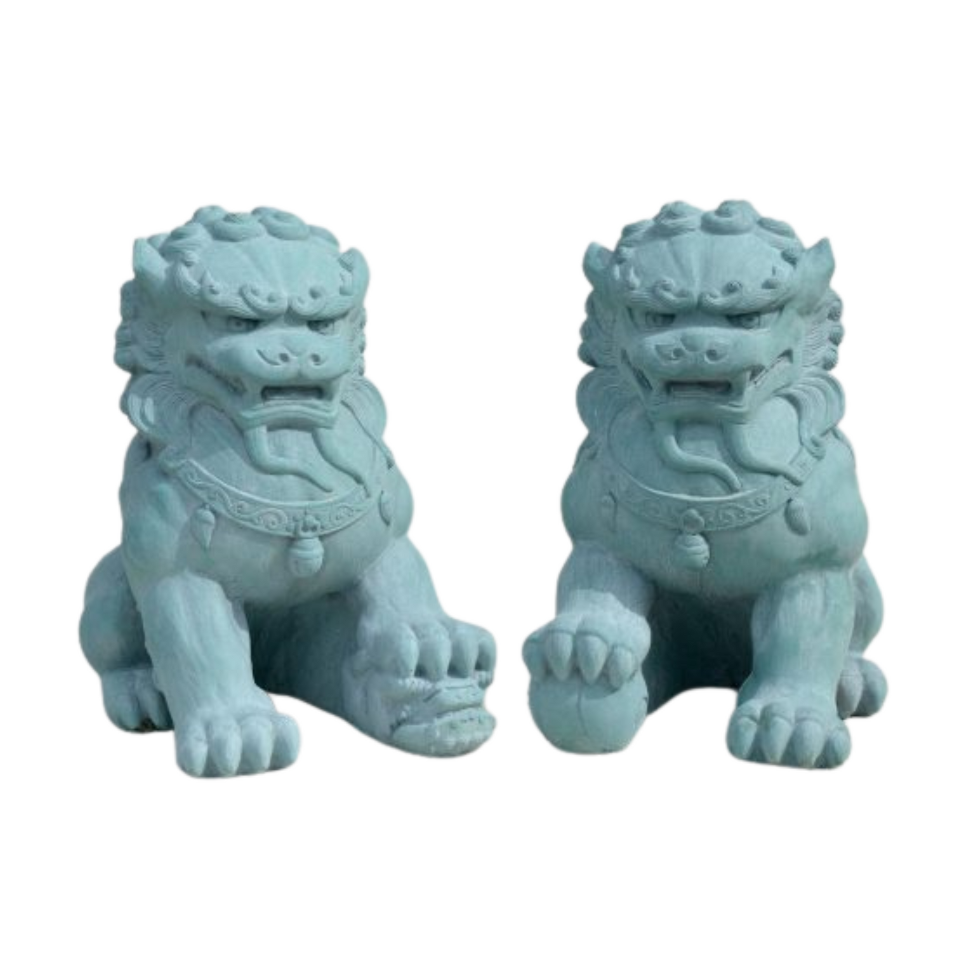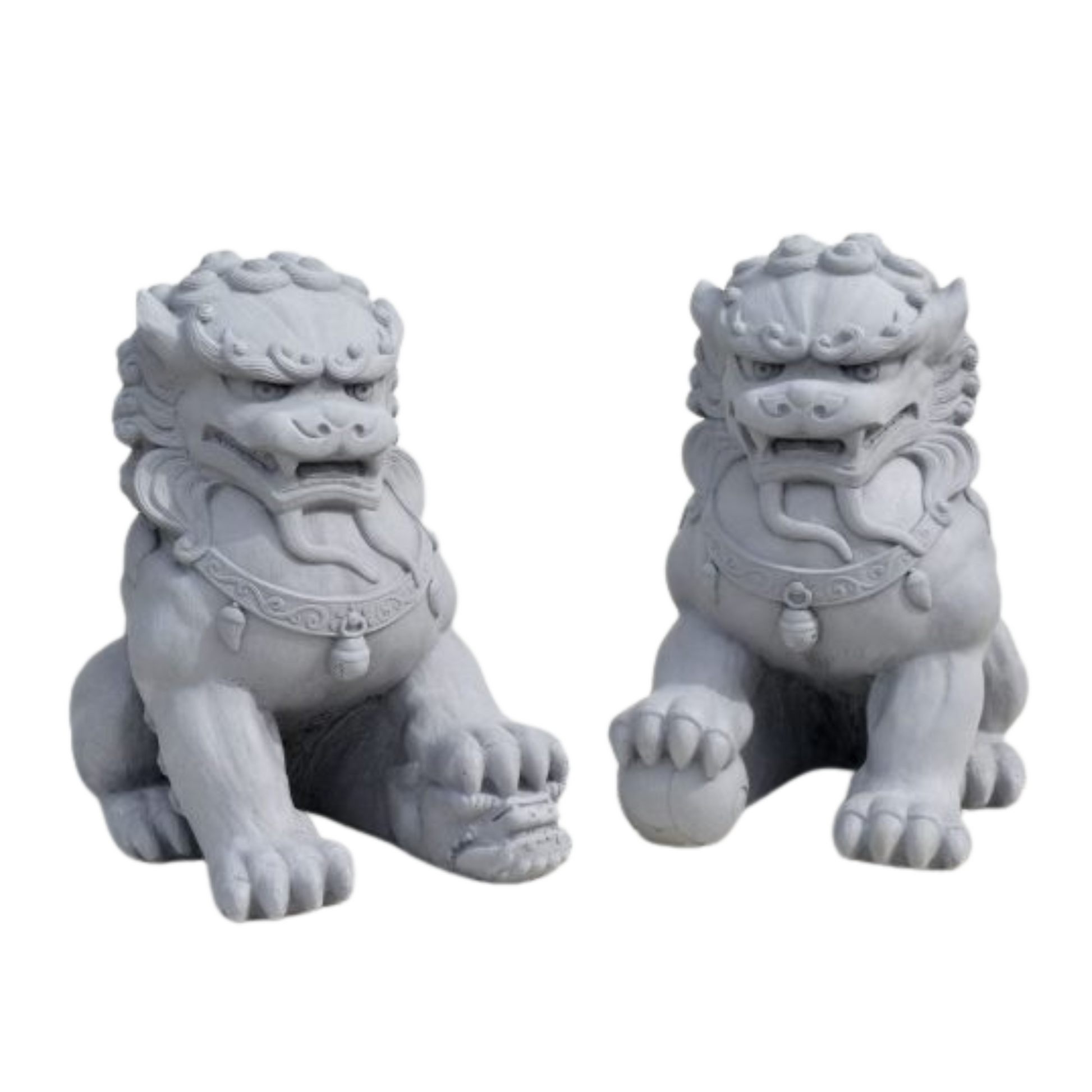 Elevate and enhance your surroundings with these captivating Fu Dog sculptures and bring the allure of Frank Lloyd Wright's artistic inspiration into your life. Crafted with utmost care, this stunning duo resembles the sculptures that flank the lower courtyard at Taliesin in Spring Green, Wisconsin.