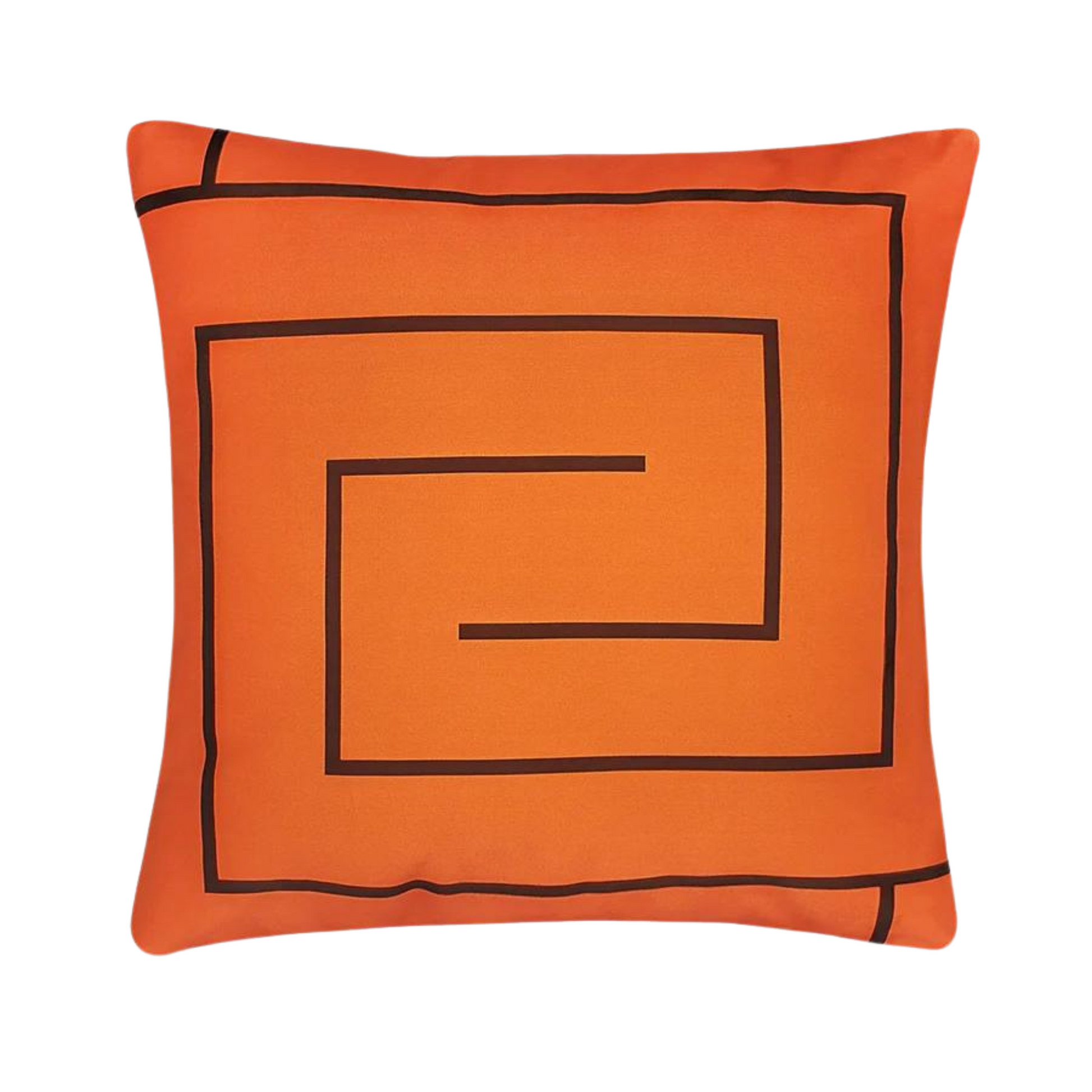 Elevate your home decor with the Whirling Arrow Orange Pillow Cover. The design of this product is inspired by a 1940s motif that Frank Lloyd Wright used as a symbol for his School of Architecture and the Taliesin Fellowship. This motif is influenced by an ancient Hohokam petroglyph discovered on a boulder within the sprawling 600 acres of Wright’s winter estate, Taliesin West. Wright noted that the design evokes the image of two hands clasping together in a gesture of friendship.