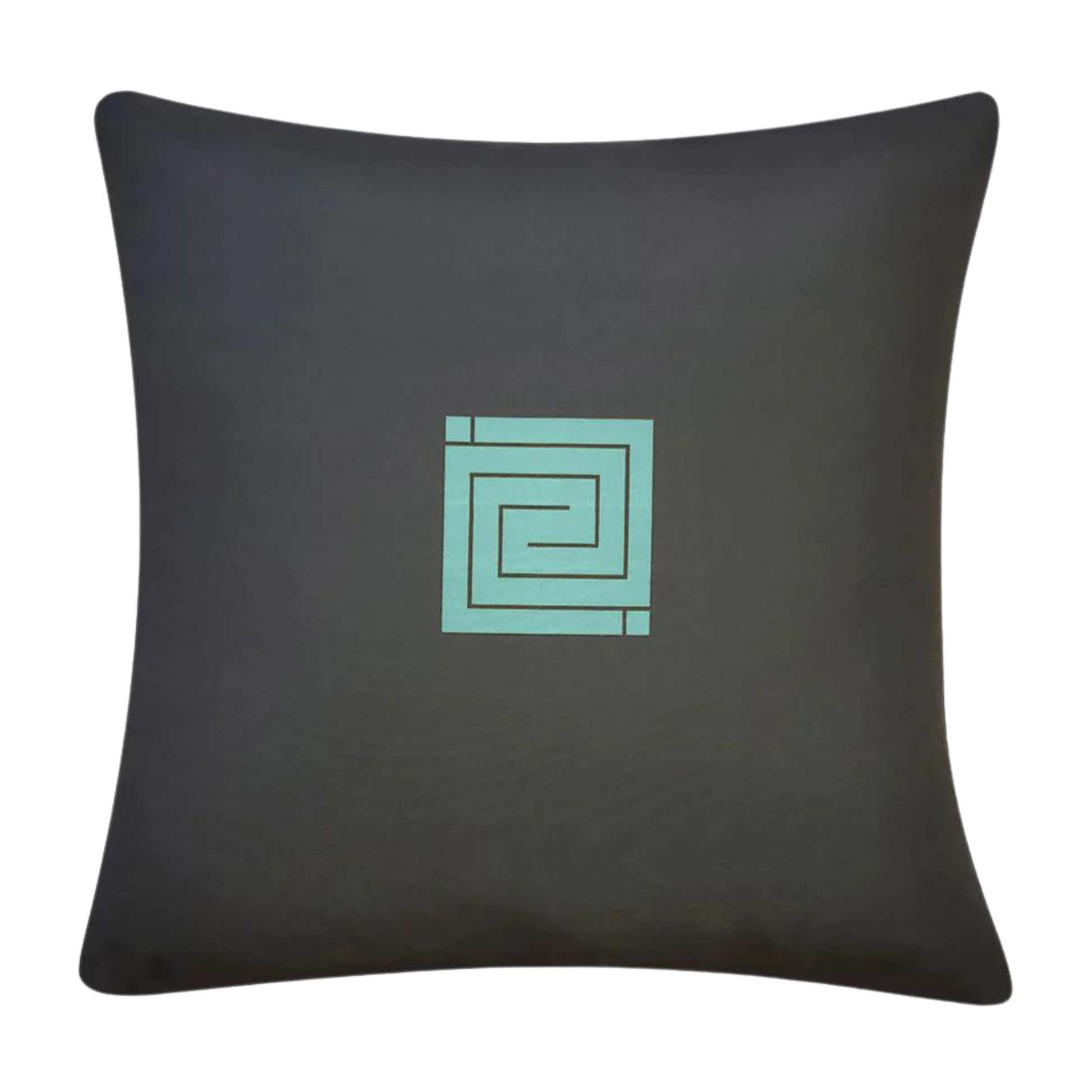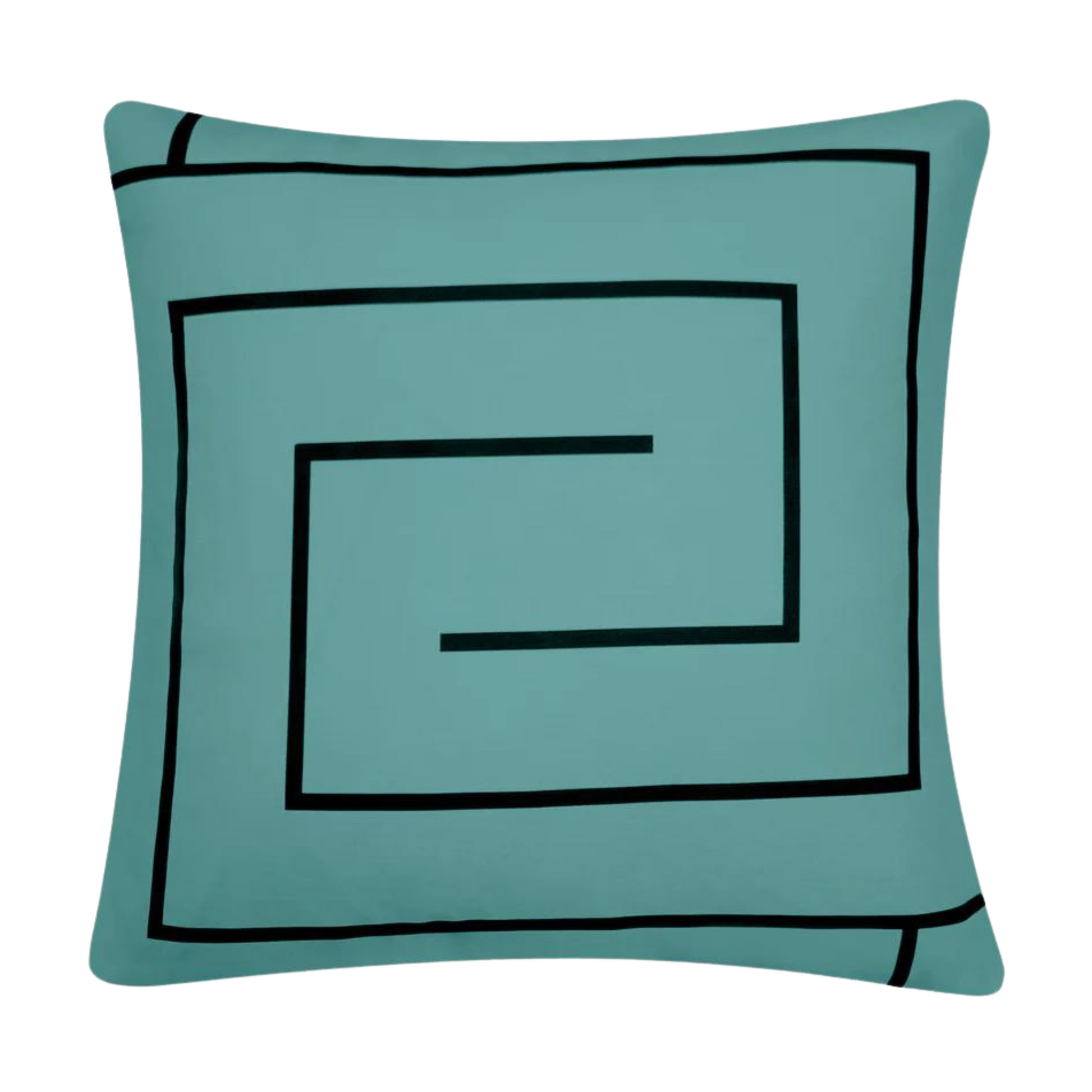 The Whirling Arrow Pillow Cover in Teal features a design inspired by a 1940s motif that Frank Lloyd Wright used as a symbol for his School of Architecture and the Taliesin Fellowship. This beautiful motif is influenced by an ancient Hohokam petroglyph discovered on a boulder within the expansive 600 acres of Wright’s winter estate, Taliesin West. Wright expressed that the design evokes the image of two hands clasping together in a gesture of friendship.