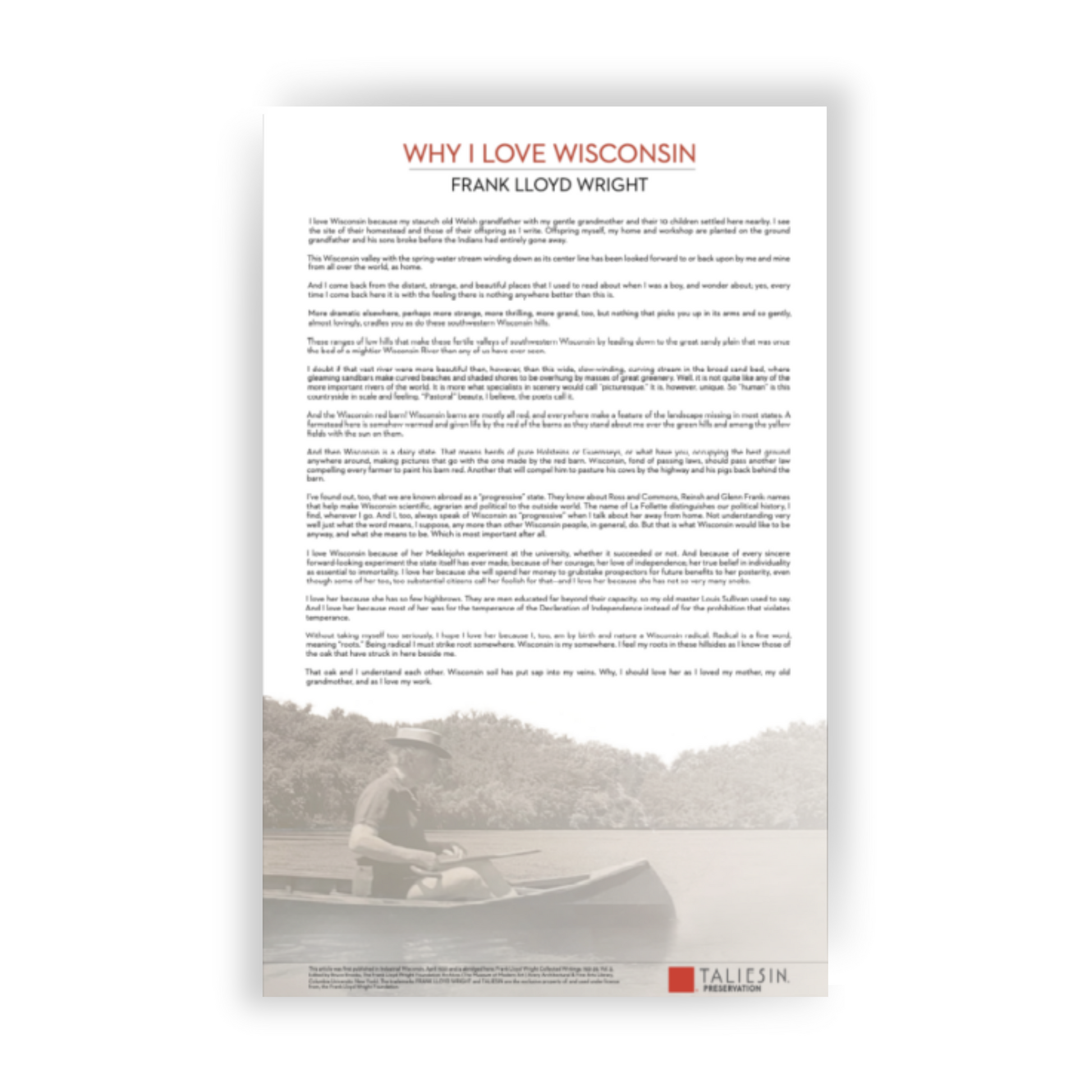 Print - "Why I Love Wisconsin" by Frank Lloyd Wright