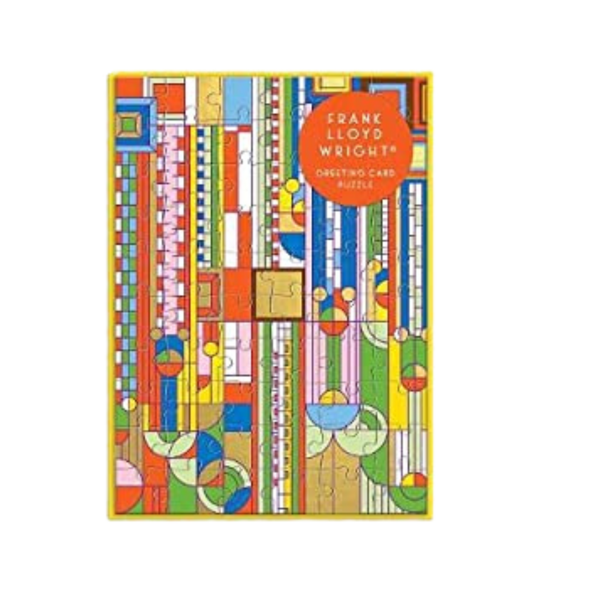 This Saguaro Forms & Cactus Flowers Greeting Card Puzzle is a 60-piece postcard puzzle featuring Wright's colorful and iconic geometric design.