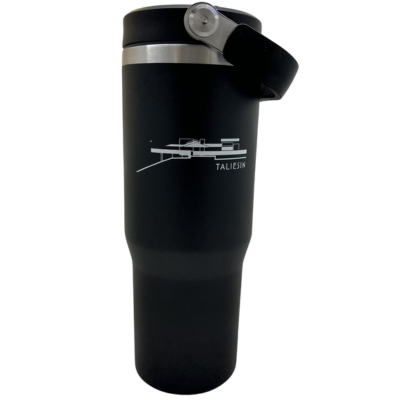 Designed with Taliesin Preservation's logo, this tumbler is crafted with top-tier double walled stainless vacuum insulated materials, offering superior thermal performance. The carry handle and flip up drinking straw make it the perfect on-the-go companion.